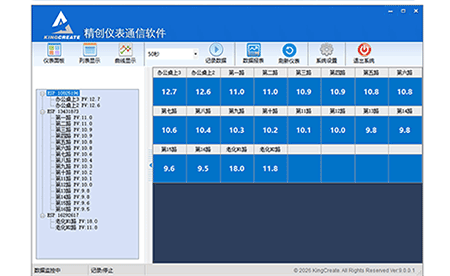 软件特色功能:1.本软件仅支持带WIFI通讯的精创仪表。2.可在1秒内显示100台仪表测量值。3.通信软件里修改仪表各个参数。4.可每秒记录数据和曲线。