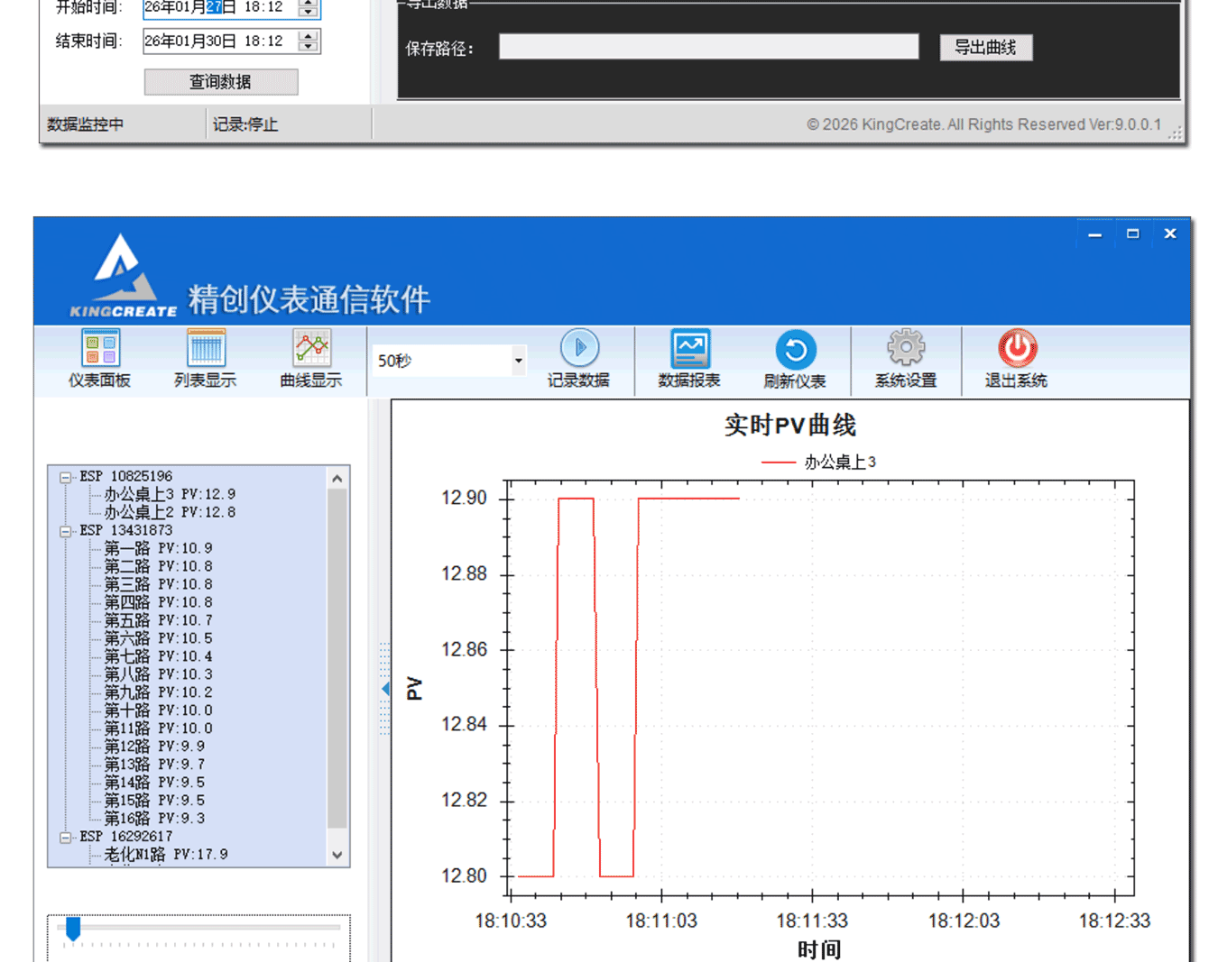 本文简要介绍带 WIFI 通讯口仪表的配网操作,仪表配网成功后,可自动与精创仪表 TCP 上位机建立通讯。相较于 RS485 串口通讯,WIFI 通讯优势显著:无需布线,只要在 WIFI 信号覆盖范围内即可接入精创 TCP 软件,同时支持 100 台以上仪表并发连接,且能在 0.5 秒内完成所有在线仪表的轮巡。精创TCP软件最大可记录 1.84×10¹⁹ 条数据每仪表,此量级远超常规应用需求 —— 即便以 10 年、每秒记录 1 条数据计算,总记录量仅为 3.1536×10⁸条,远低于软件存储上限。